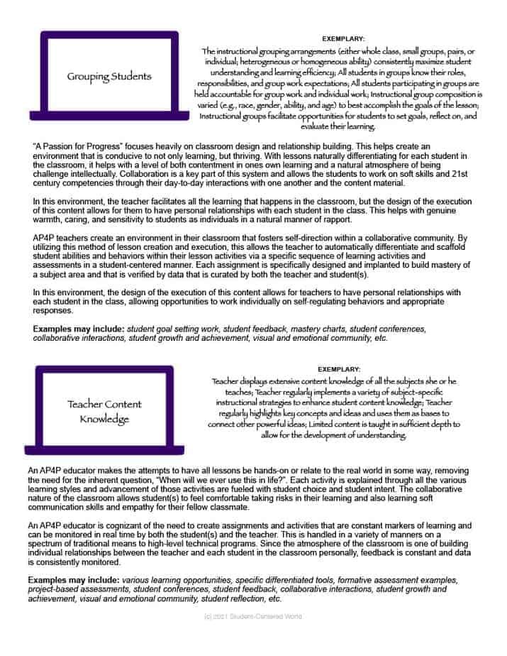In addition, there are specific elements that teachers must demonstrate for it to be said that they have achieved the standard. The specific elements are what teachers should be looking for when observing another teacher.
